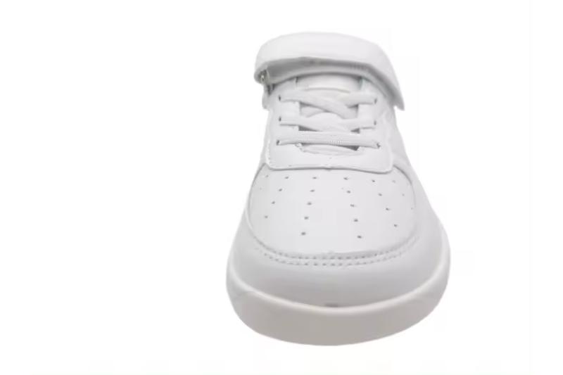Zapatillas infantiles en color blanco, versátiles y cómodas para el día a día. Perfectas para el colegio, cuentan con cierre de velcro y cordones elásticos que facilitan el calce. Su diseño deportivo con suela antideslizante aporta seguridad y comodidad, ideales para colegio, deporte y uso diario.