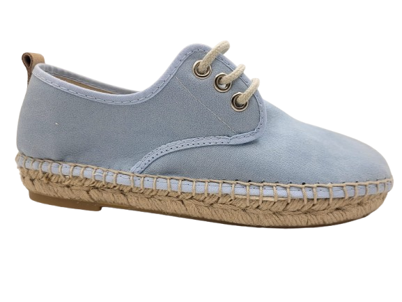 Esparteña niño de suede para primavera y verano. Un blucher cómodo y espectacular para ceremonias, comuniones y eventos.Con plantilla de lona acolchadaFabricado en suede y cordones ajustables.Con piso de caucho natural y yute. TALLAN NORMAL.